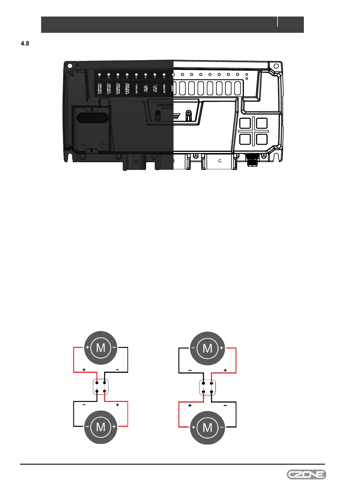 2 x 15A H-Bridge channels are included on the Control X PLUS allowing reversing motors to be connected directly to