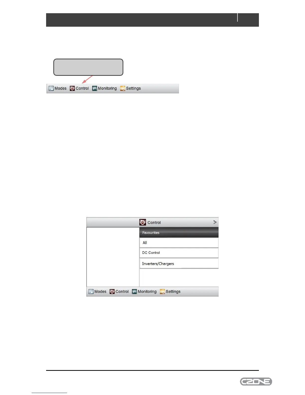 The main menu’s Control tab accesses all configured circuits on the CZone network.