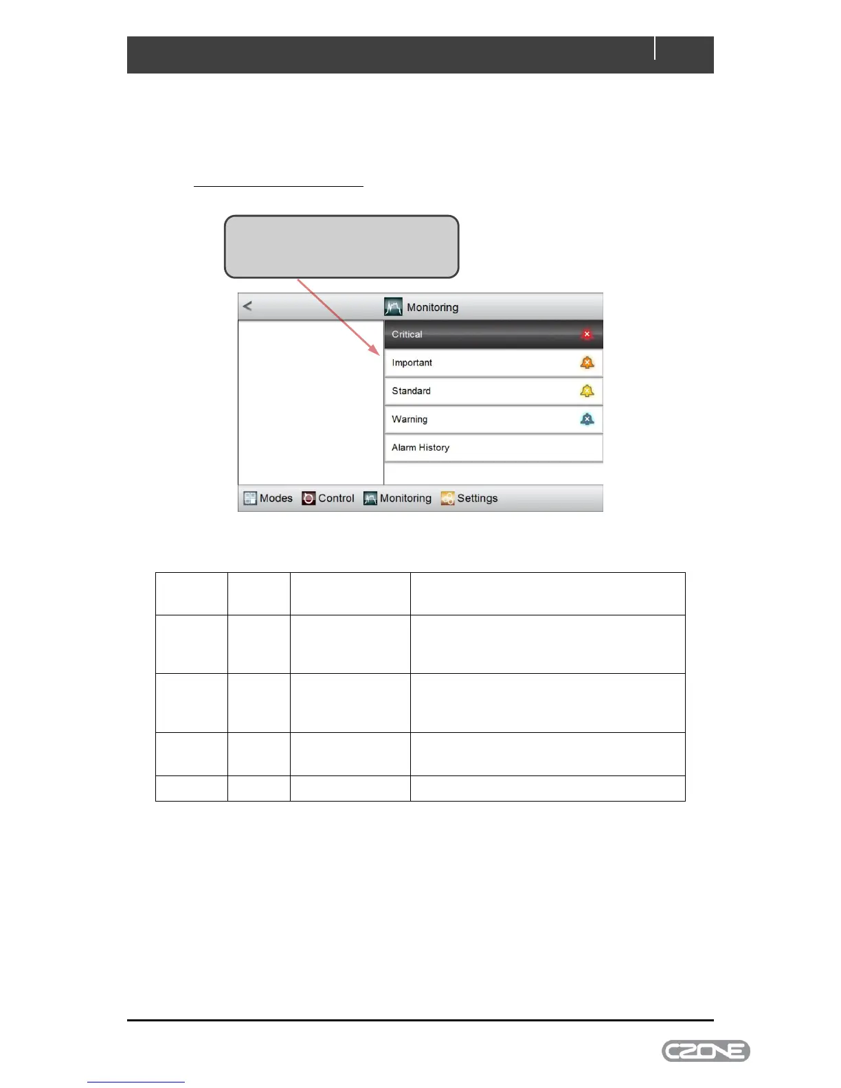 Alarm monitoring behaves in the same way for all levels of severity. On selecting Alarms from the