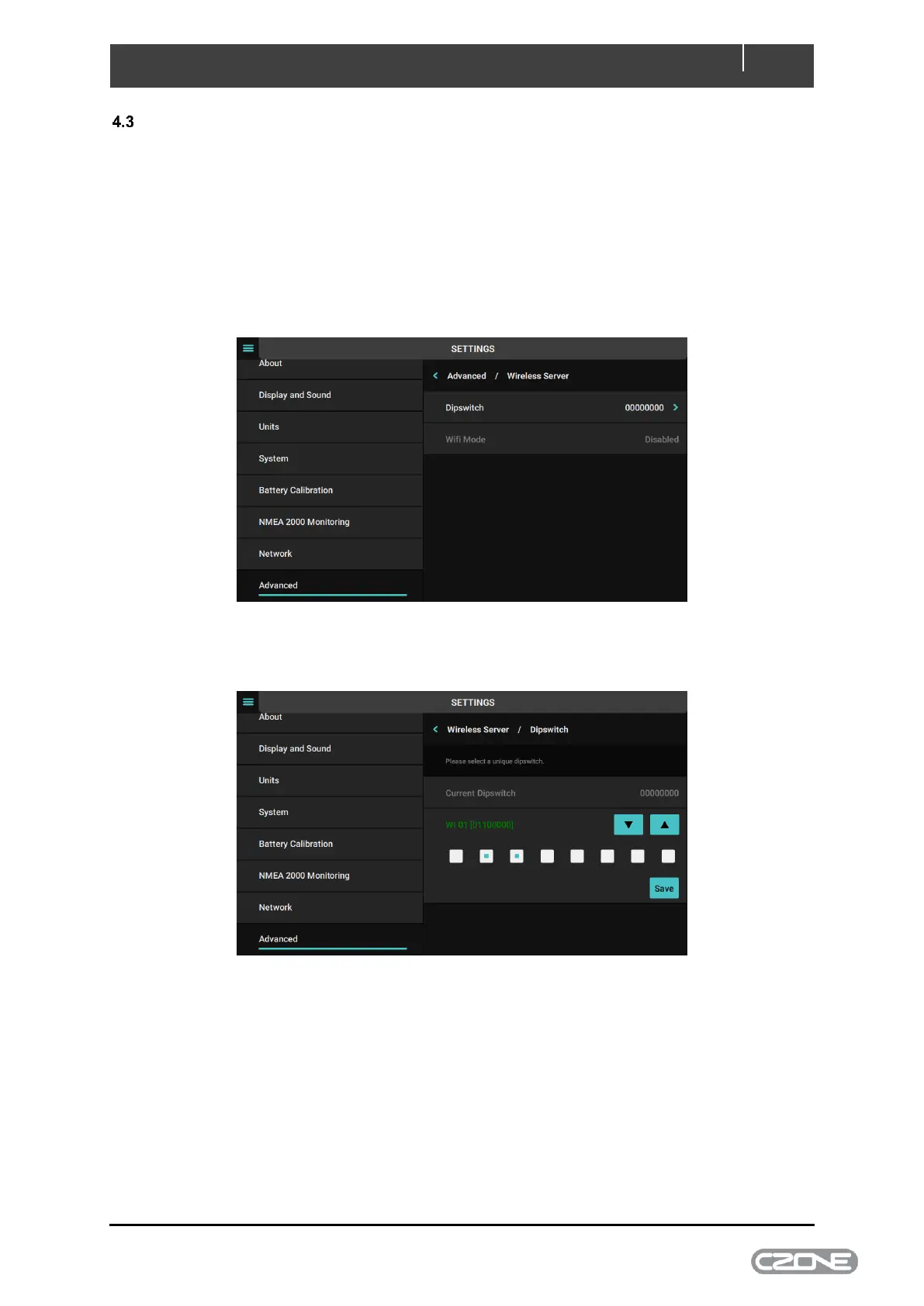 2. Enter the dipswitch as assigned in the CZone configuration, which should be different to the