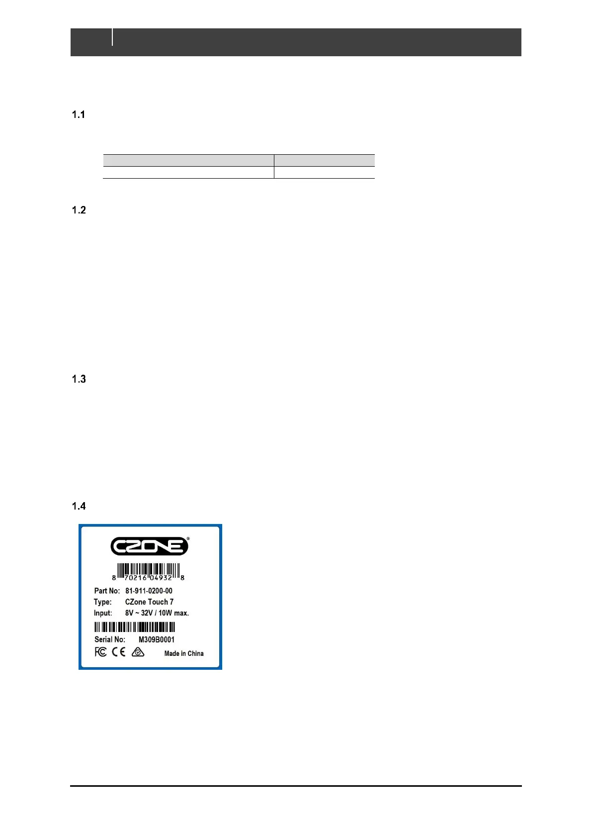 The CZone product warranty covers the Touch 7 for the first two years after the purchase date, on the