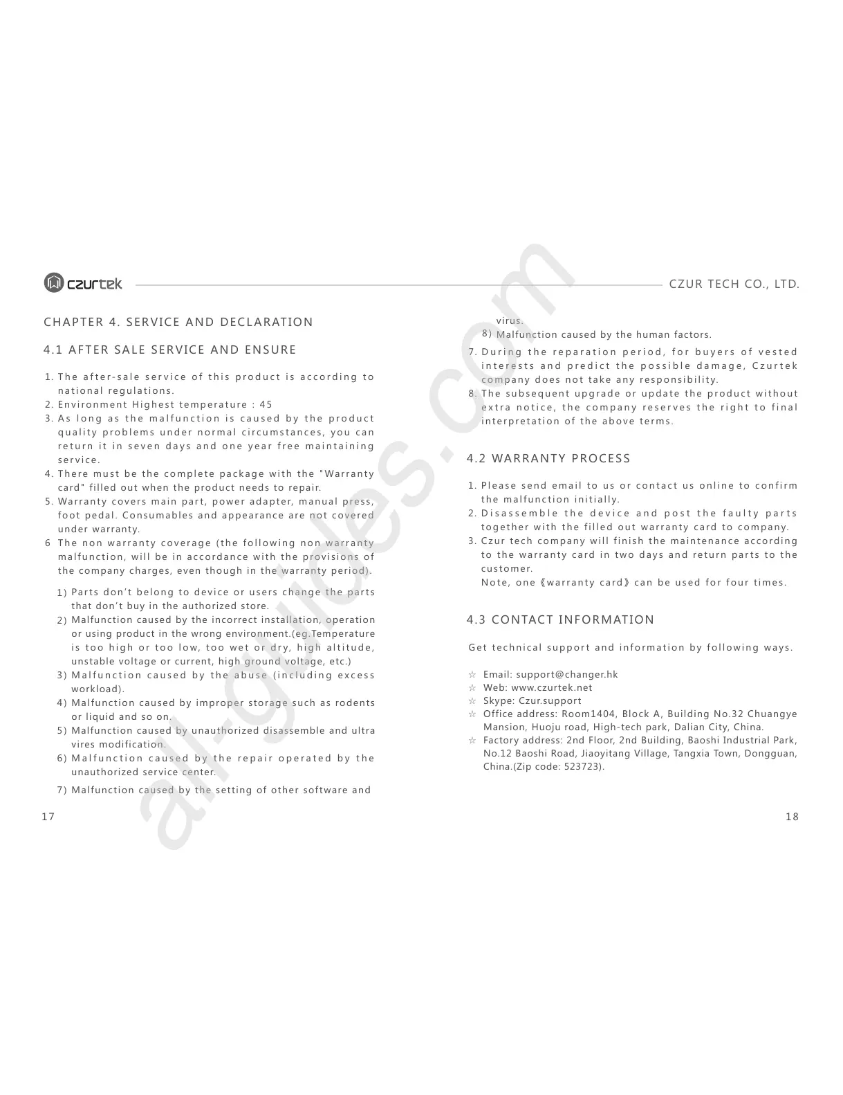Czur tech company will finish the maintenance according