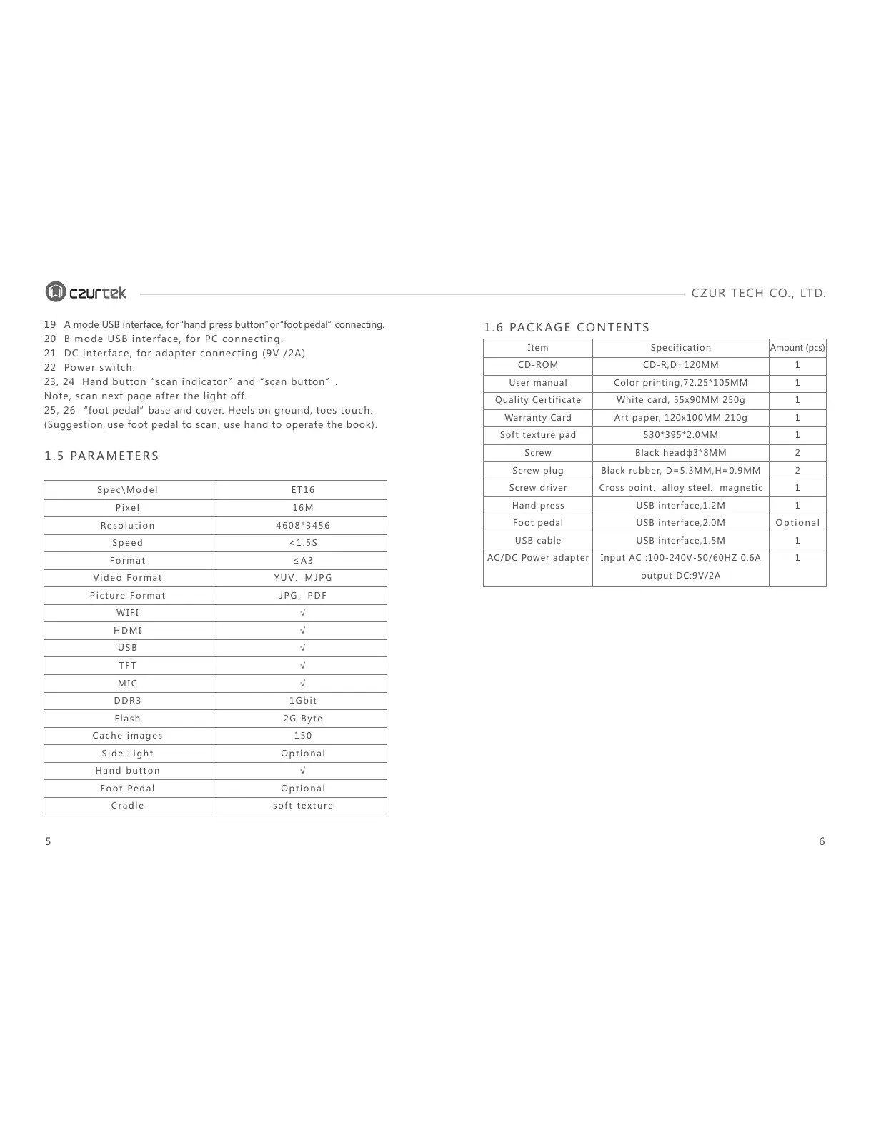 1.6 PACKAGE CONTENTS