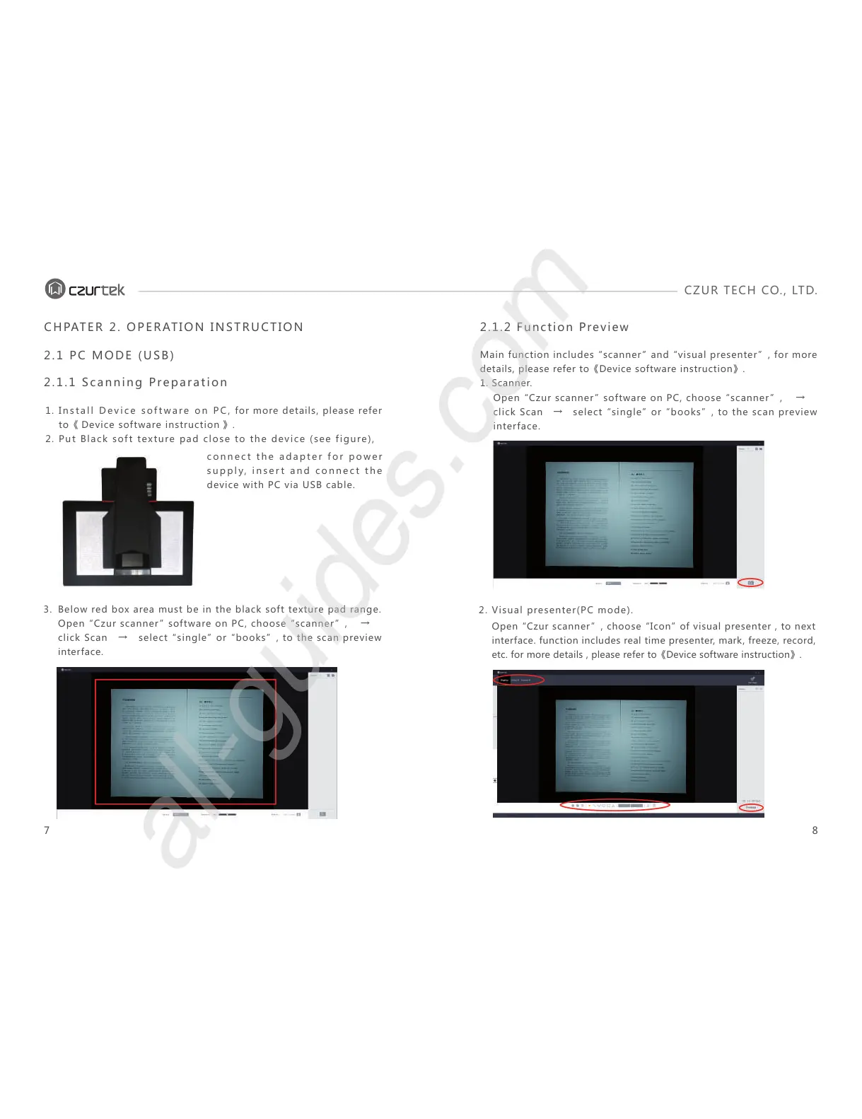 Open “Czur scanner”, choose “Icon” of visual presenter , to next