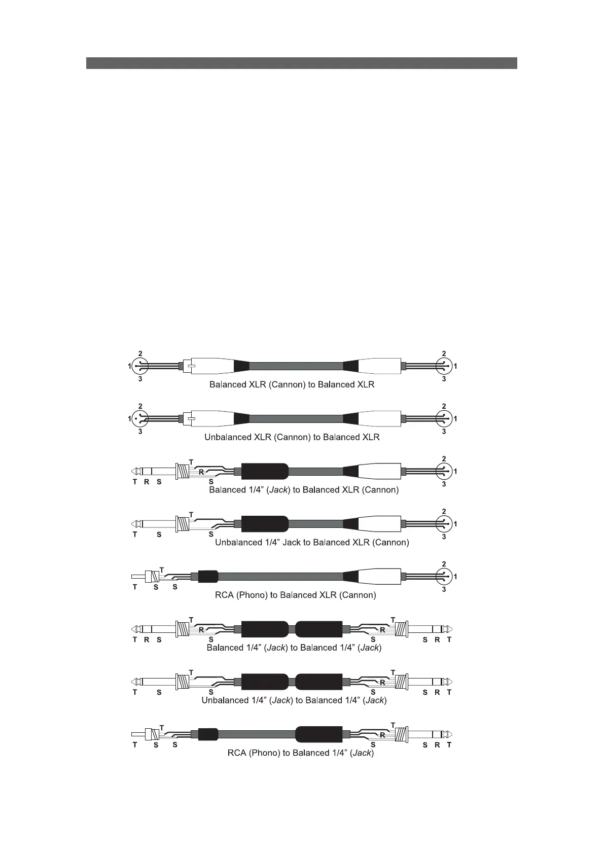 processor or amplifier inputs. The connectors on the left-hand side come from a signal source, and the ones