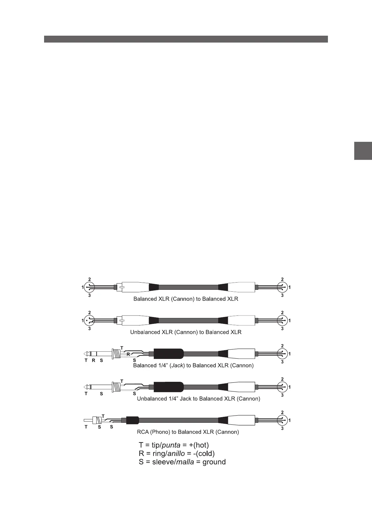 transportan la señal. La mayor parte de los aparatos electrónicos de audio profesional trabajan con entrada