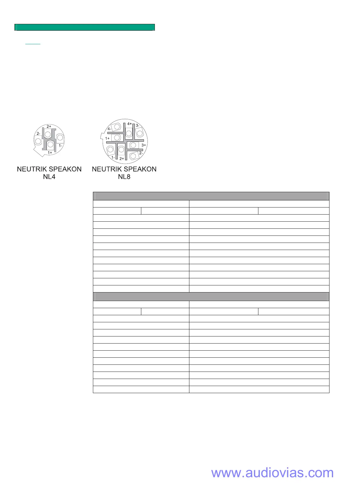 (eight pin) Neutrik Speakon connectors. These connectors are