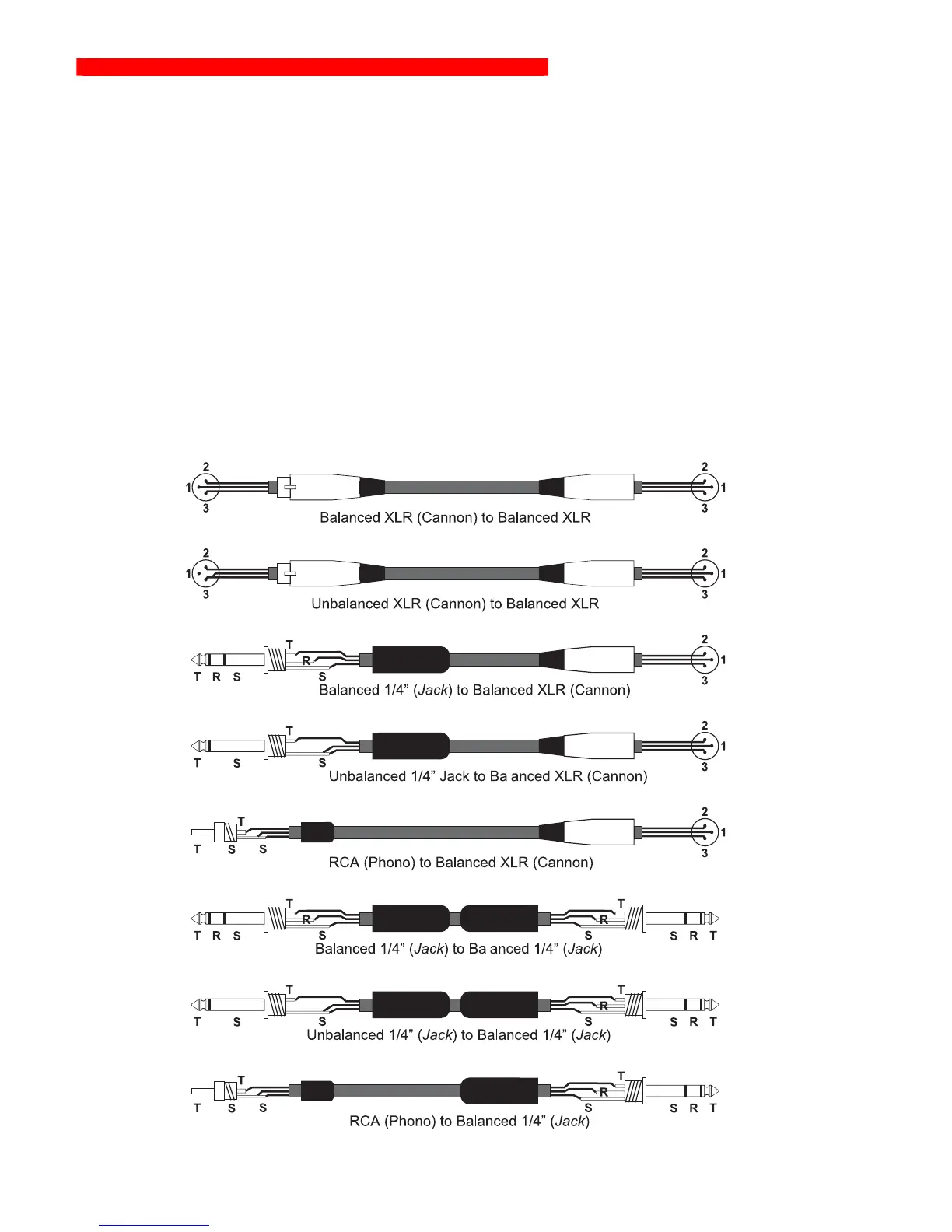 processor or amplifier. Note that on the un-balanced connectors on the left-hand side, two terminals are joined inside the connector. If