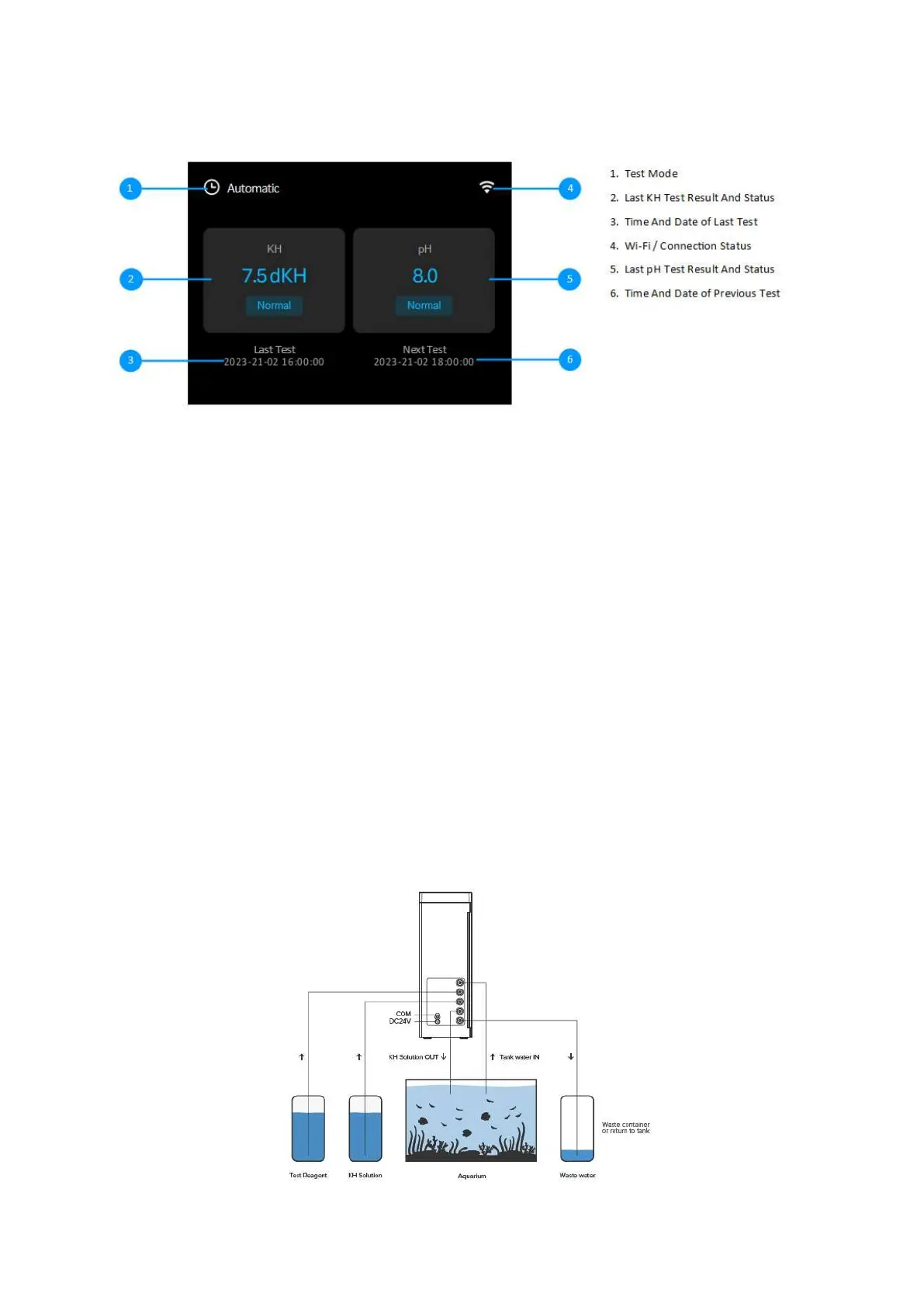 The inlet tubes for the KH Reagent, Aquarium Water inlet and KH buffer solution should be as short