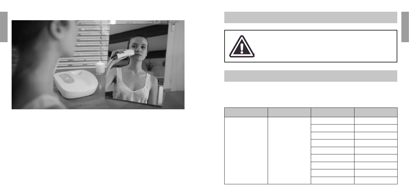 then 2 consecutive ashes that serve to treat the same area. Once the ashes are emitted, the LEDs on the Handpiece (3)