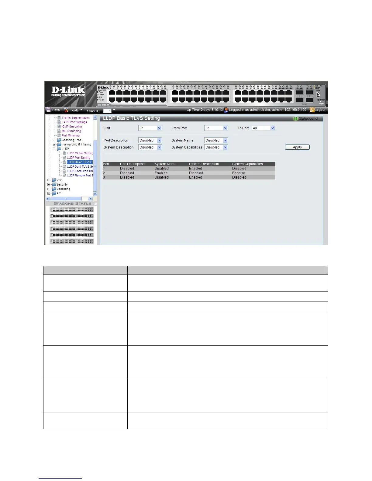 1. Click L2 Features > LLDP > LLDP Basic TLVS Setting. The LLDP Basic TLVS Setting Page opens:
