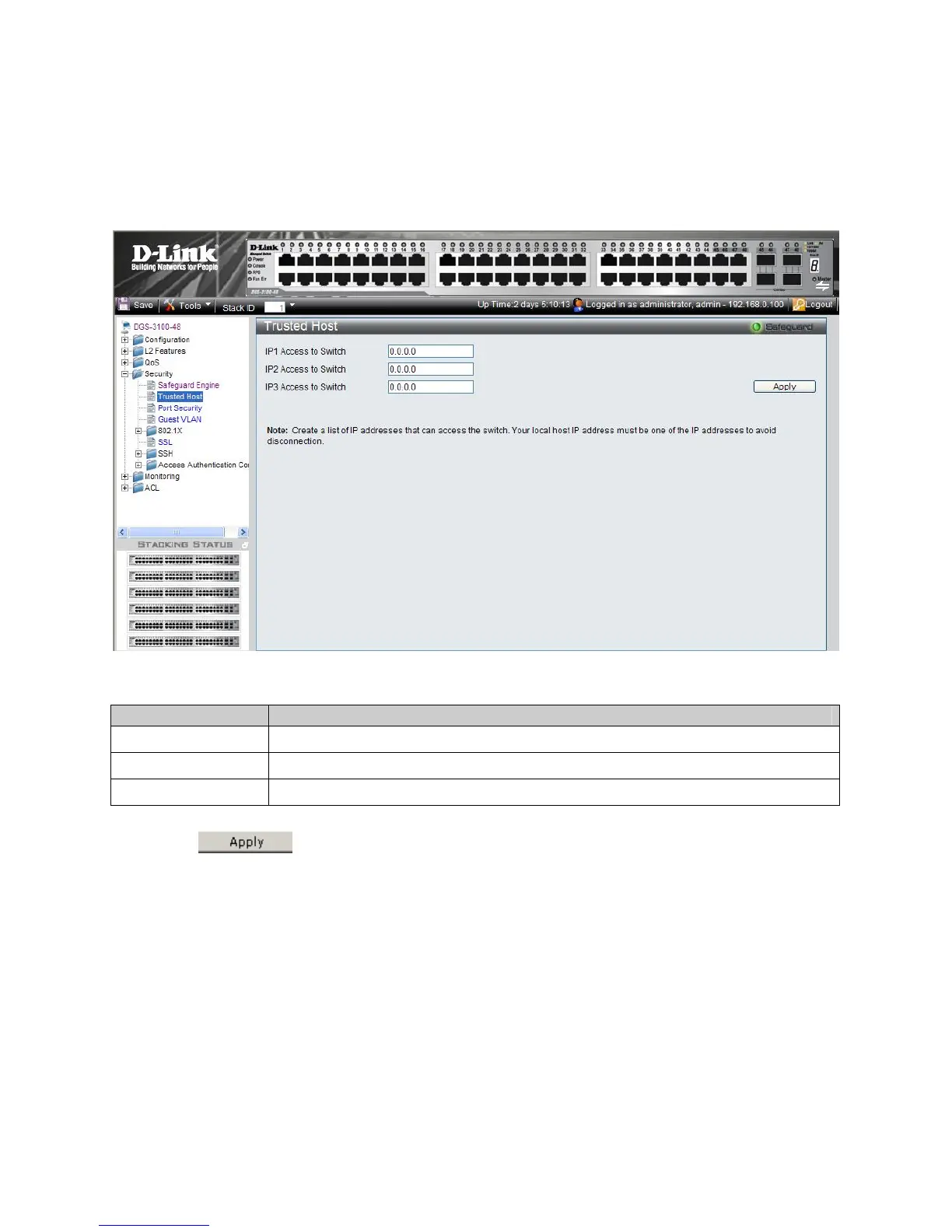1. Click Security > Trusted Host. The Trusted Host Page opens: