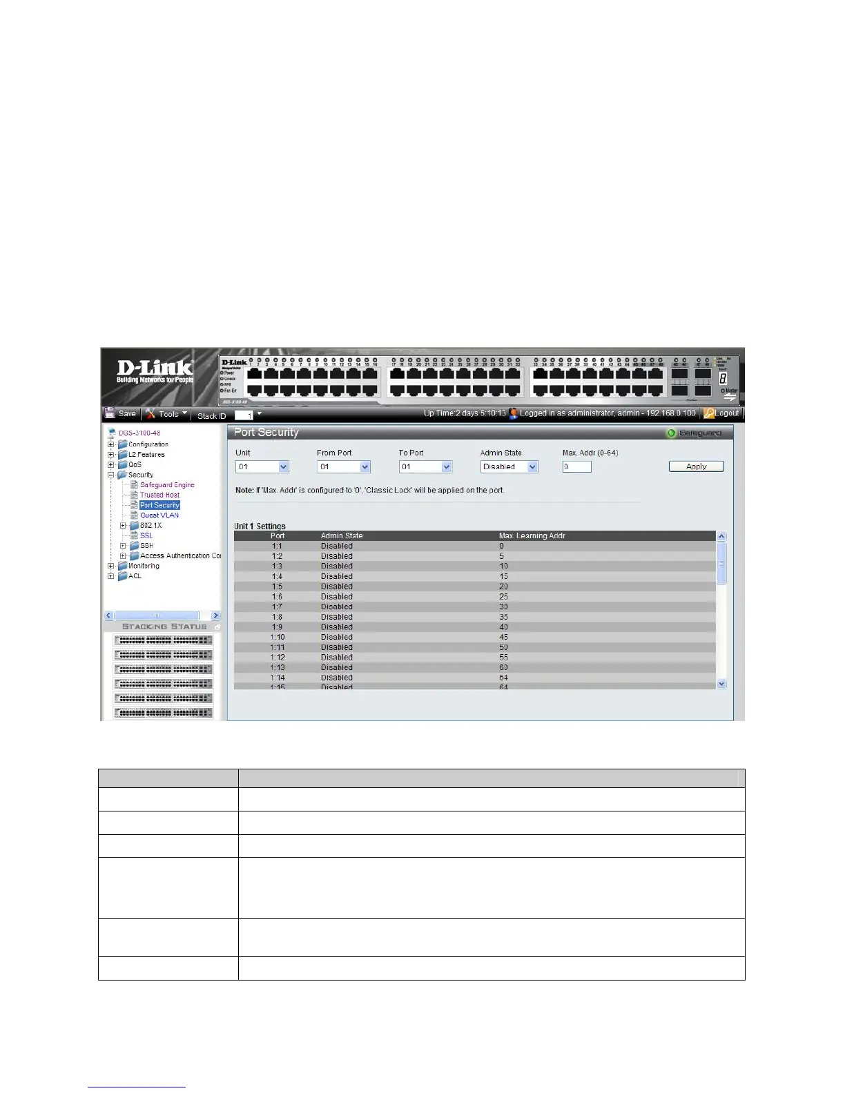 Disable — Indicates that port security is disabled on the device. This is the default value.