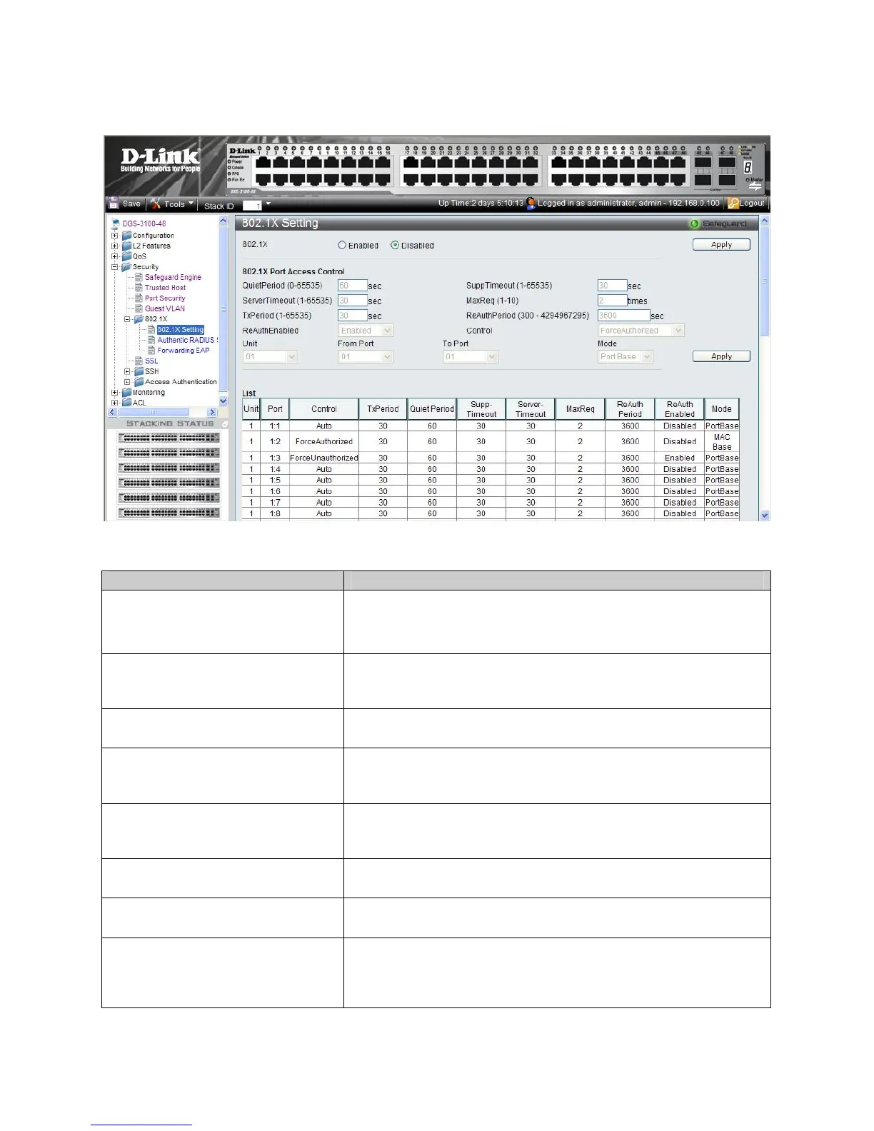 1. Click Security > 802.1X Setting. The 802.1X Setting Page opens: