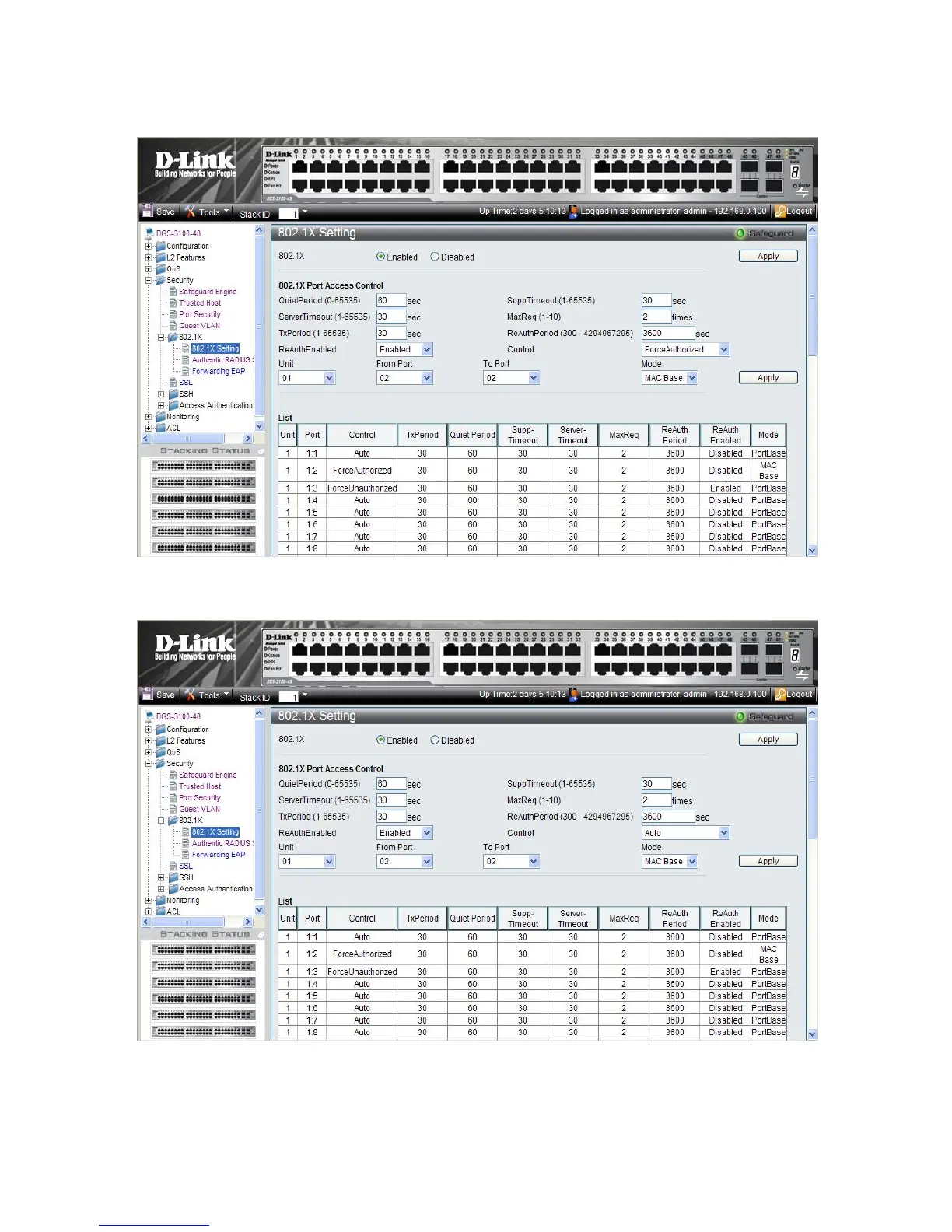 6. The last step on Security > 802.1X > 802.1X Setting page should be setting the port control to ‘Auto’, this will
