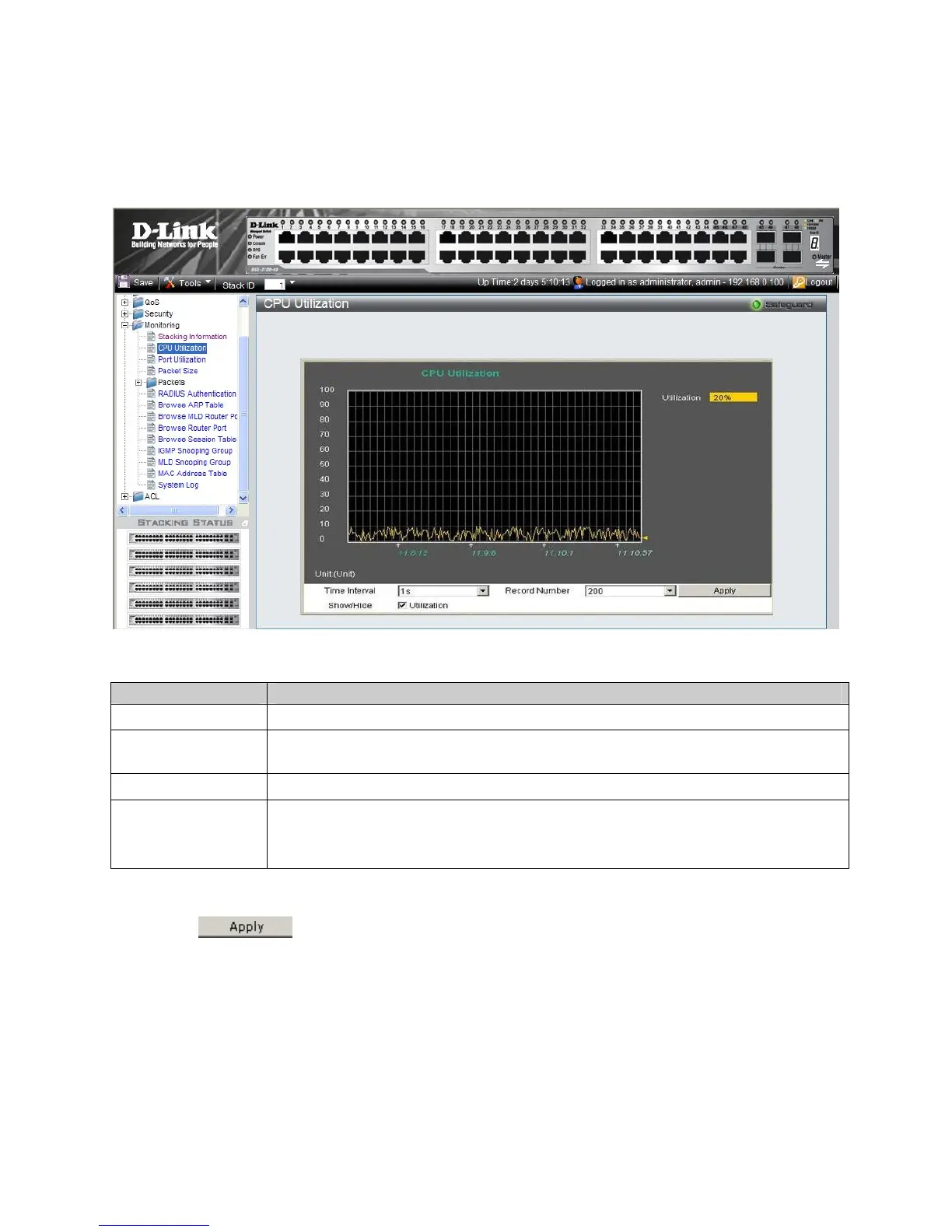1. Click Monitoring > CPU Utilization. The CPU Utilization Page opens: