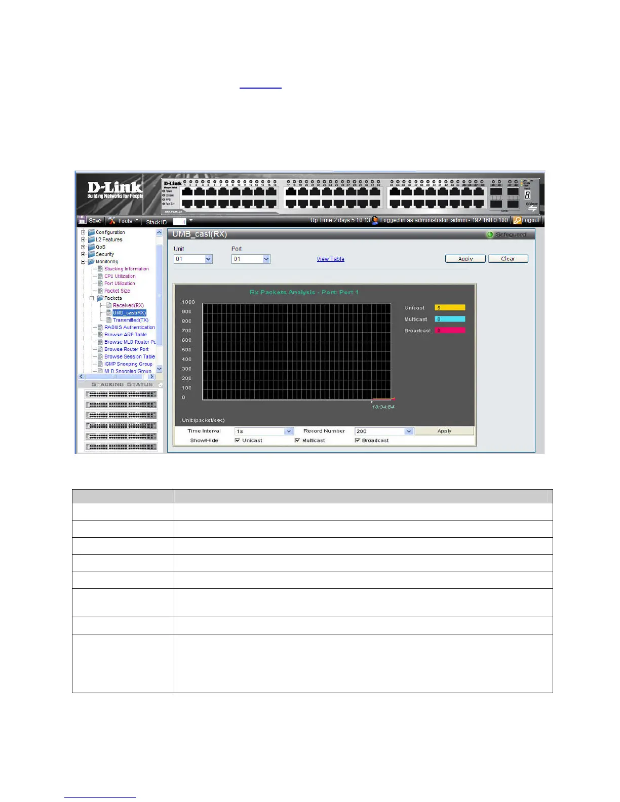 1. Click Monitoring > Packets > UMB_cast(RX). The UMB_cast(RX) Page opens: