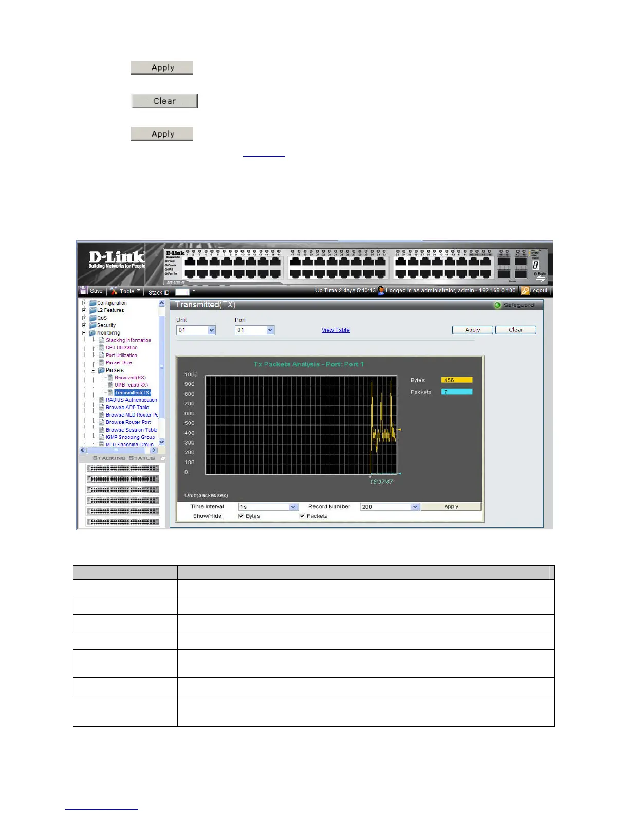 The Transmitted(TX) Page contains information about packets transmitted through device ports. To view transmitted packet