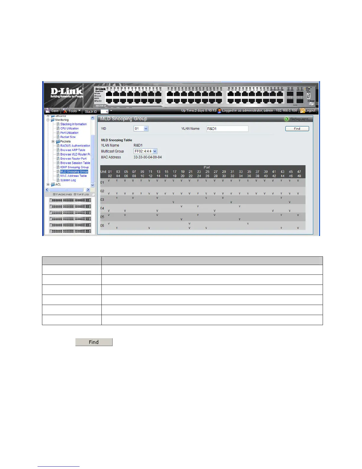 1. Click Monitoring > MLD Snooping Group. The MLD Snooping Group Page opens: