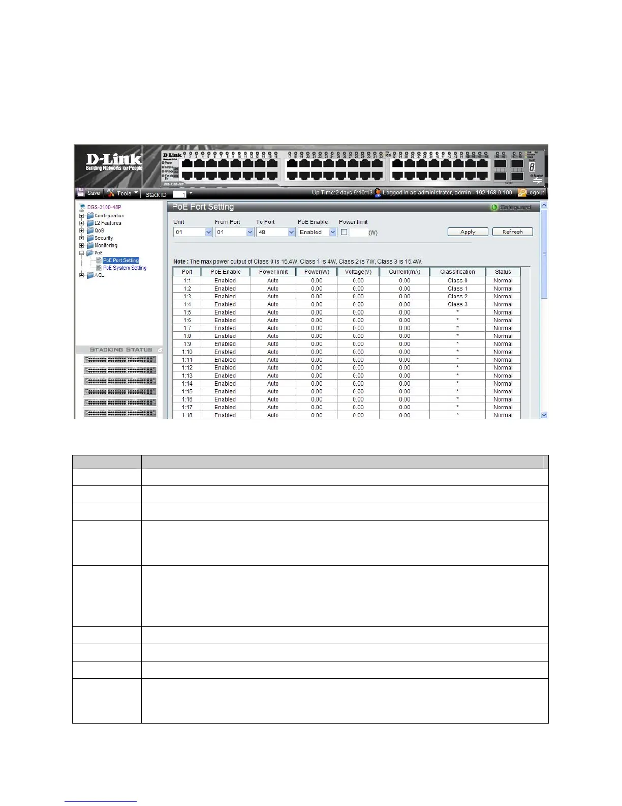 1. Click PoE > PoE Port Setting. The PoE Port Setting Page opens: