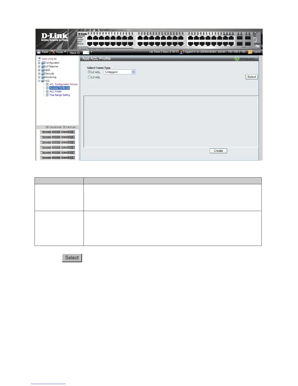 The Add ACL Profile Page updates accordingly, enabling selection of t