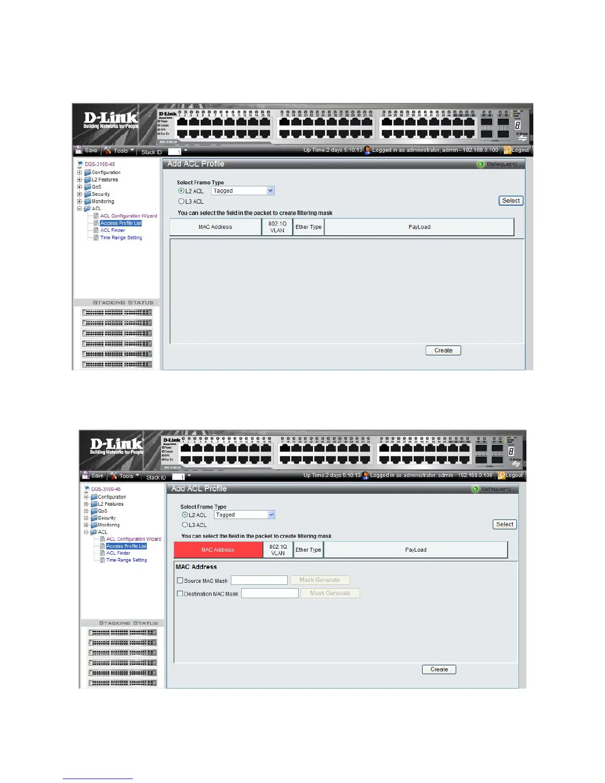 Figure 8-5 ACL Profile L2 ACL Tagged MAC Address Page
