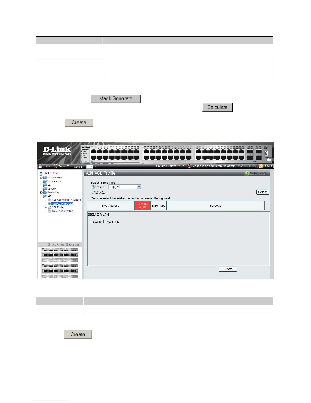1. Click the 802.1Q VLAN button. The ACL Profile L2 ACL Tagged VLAN Page updates to show the following: