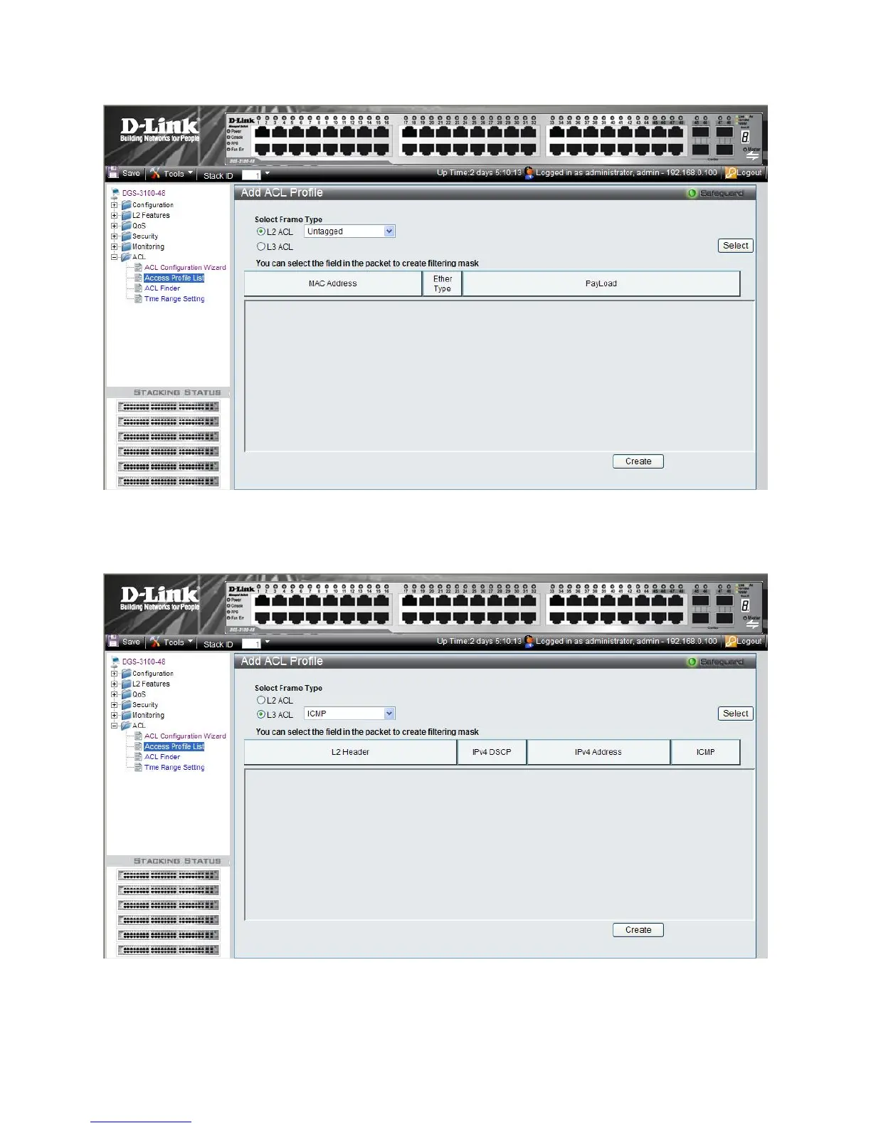 Figure 8-8 ACL Profile L2 ACL Untagged Page