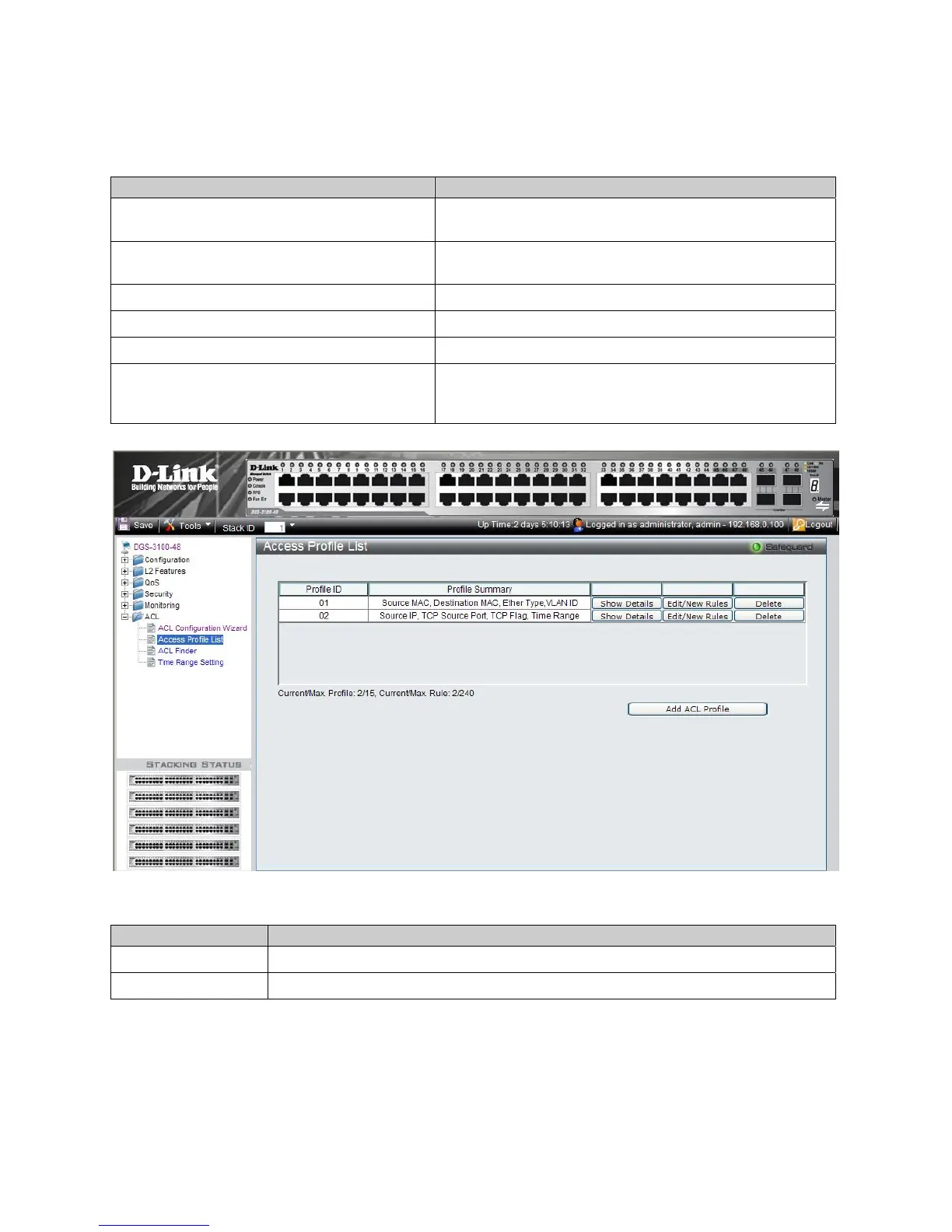 Click ACL > Access Profile List: The Access Profile List Page opens.
