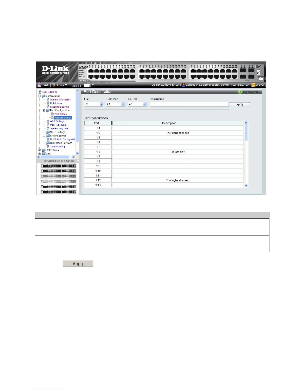 The Port Description Page allows network managers provide a description of device ports. To define a port description: