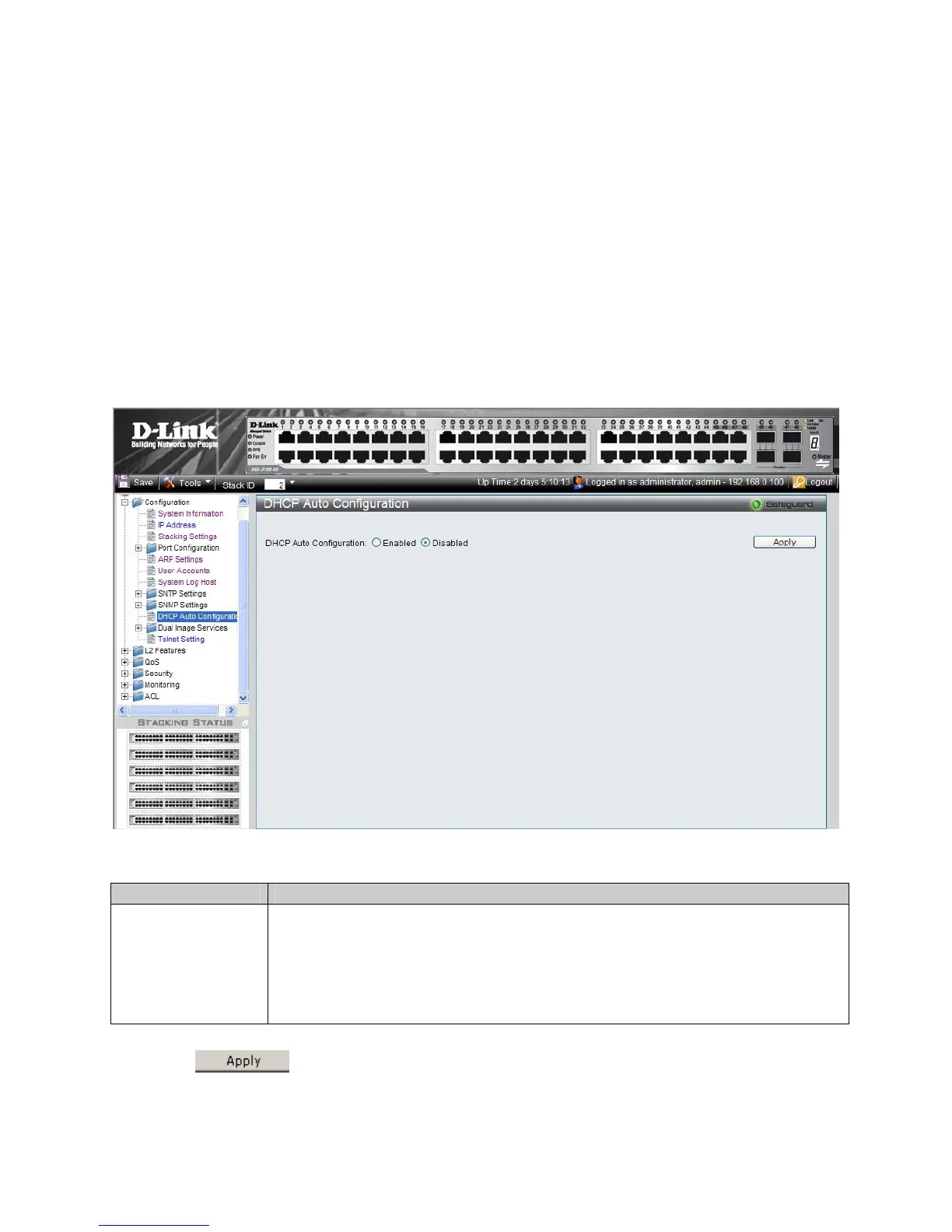 In the DHCP Auto Configuration Page, users can enable or disable automatic download of the latest image and