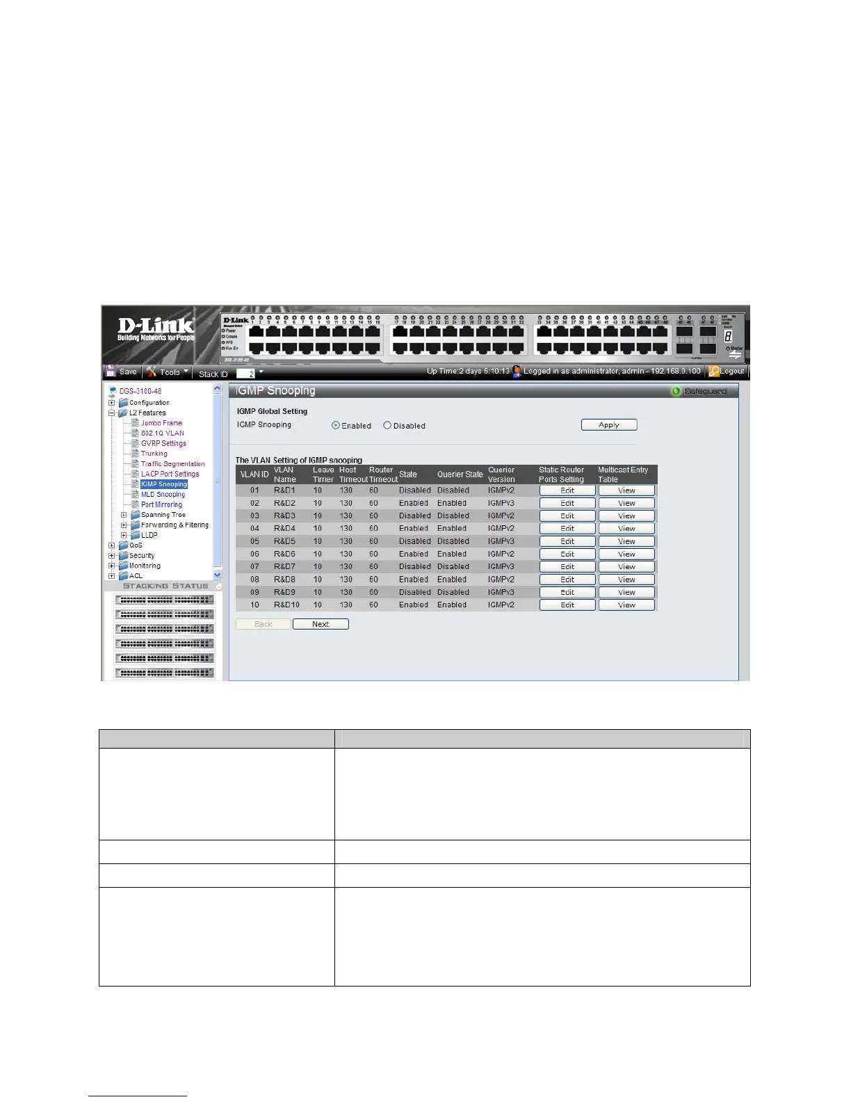 be enabled in order to enable IGMP Snooping. The possible field values are: