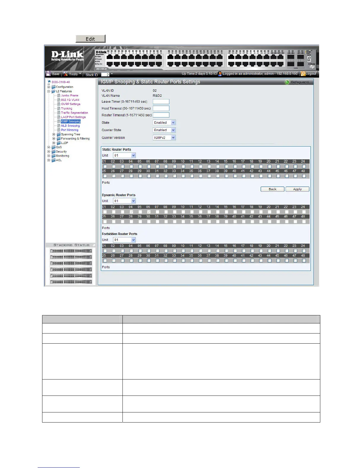 Figure 3–12. IGMP Snooping and Static Router Ports Settings Page