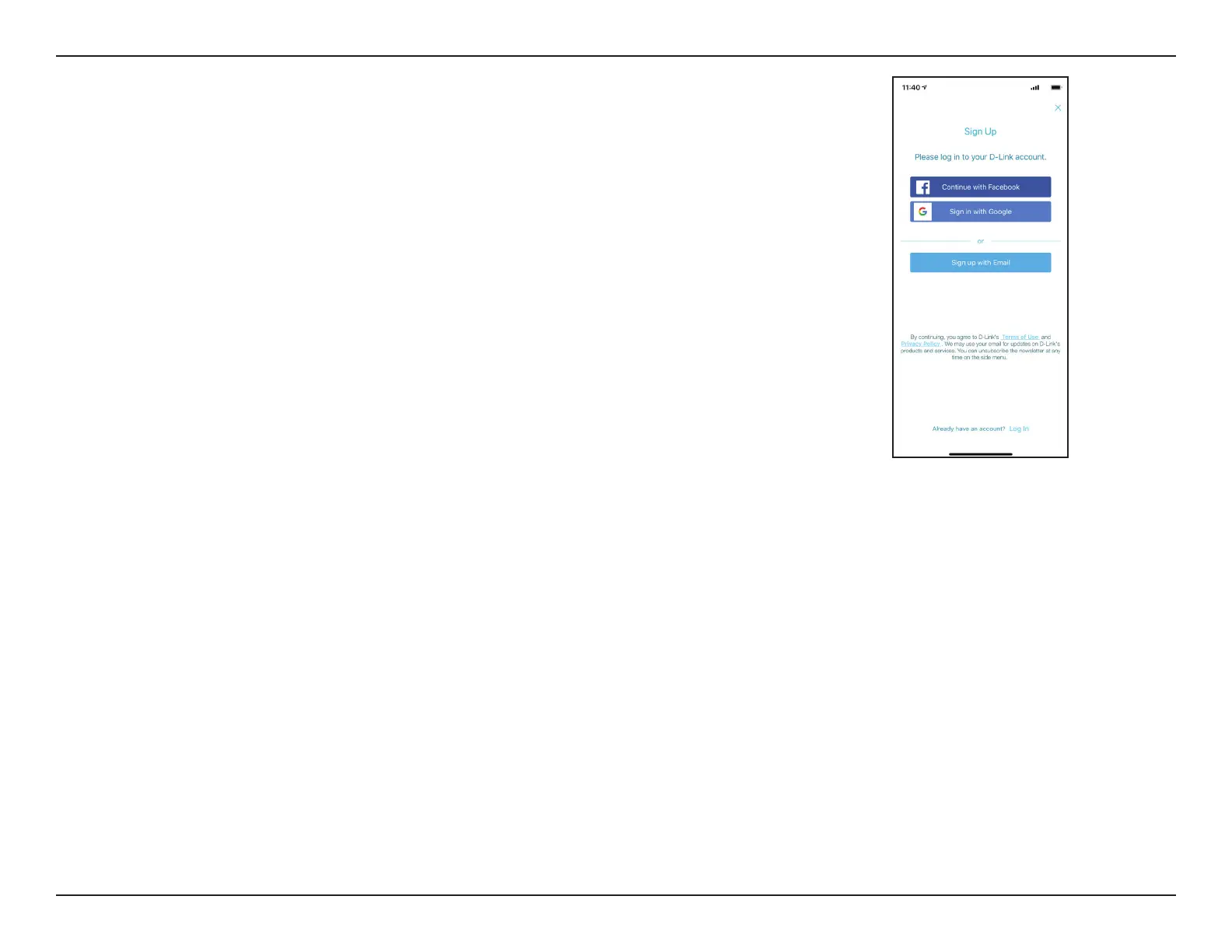 In this menu, you can sign up for a D-Link account using Facebook, Google