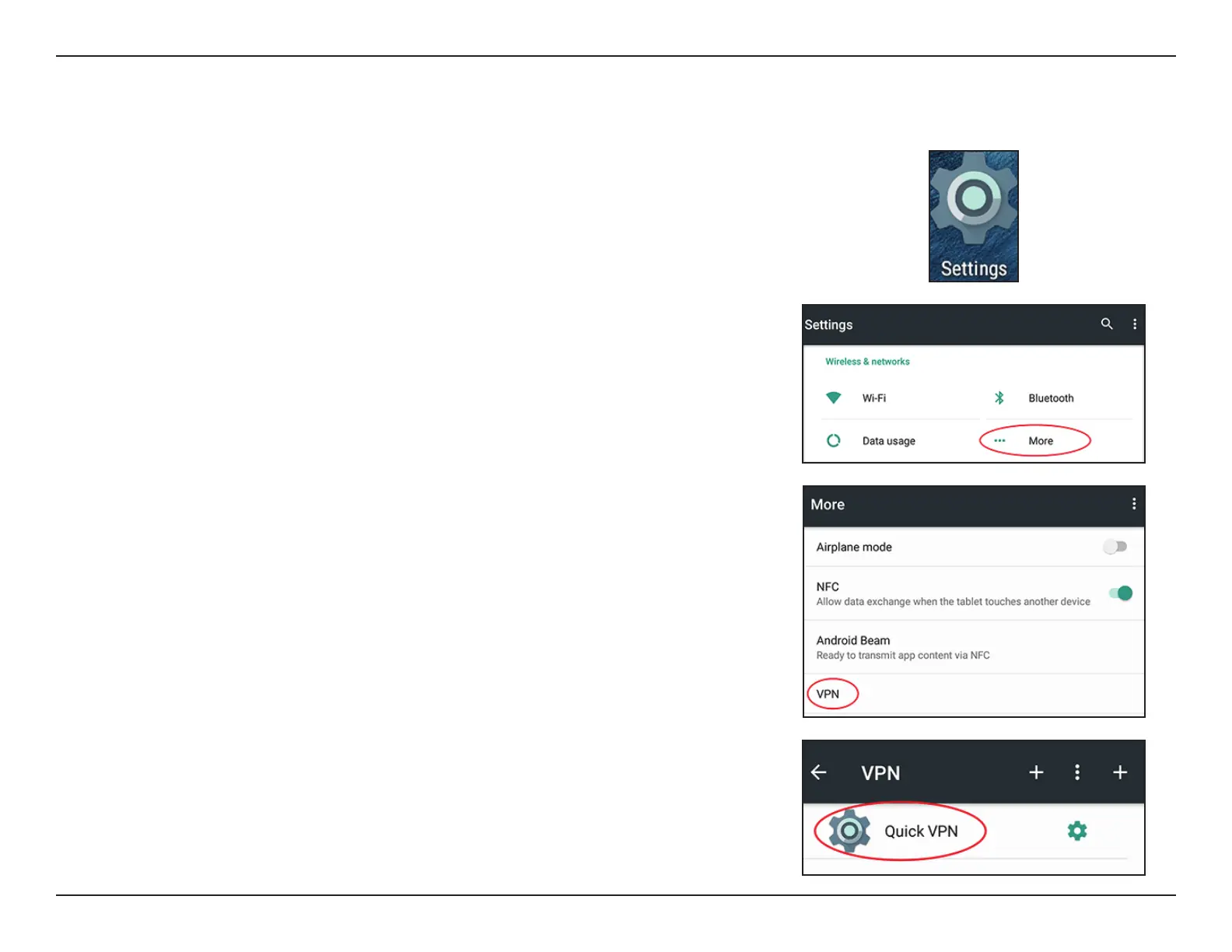 > More from the Wireless & networks > VPN and select the Quick VPN