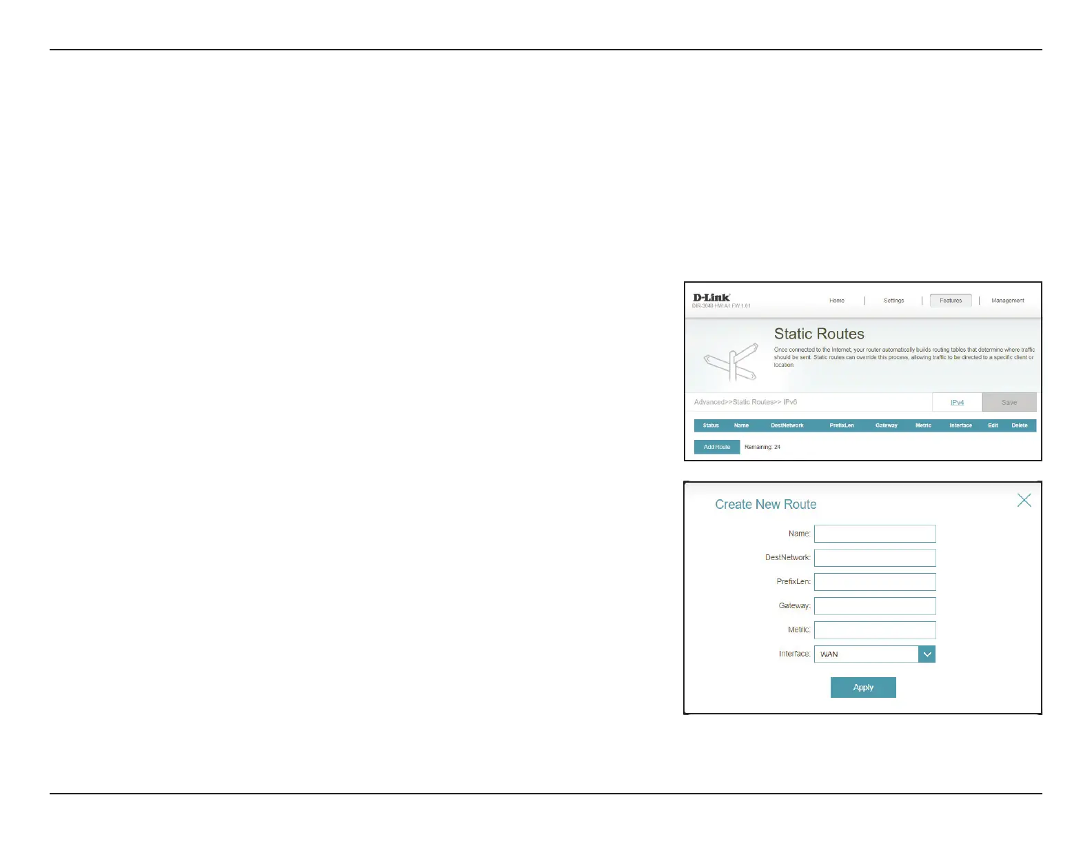 To congure the Static Route IPv4 settings, click the IPv4 link. Refer to Static Route - IPv4 on page 83