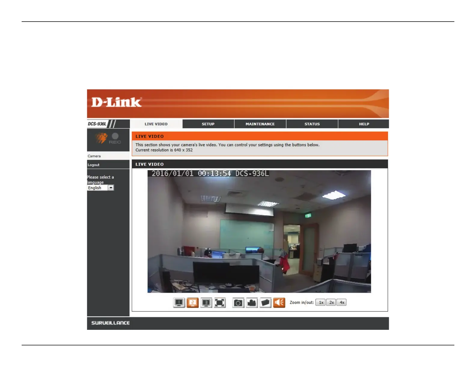 The Live Video page lets you view the live video stream from your camera. You can also switch between video streams, take snapshots, and record