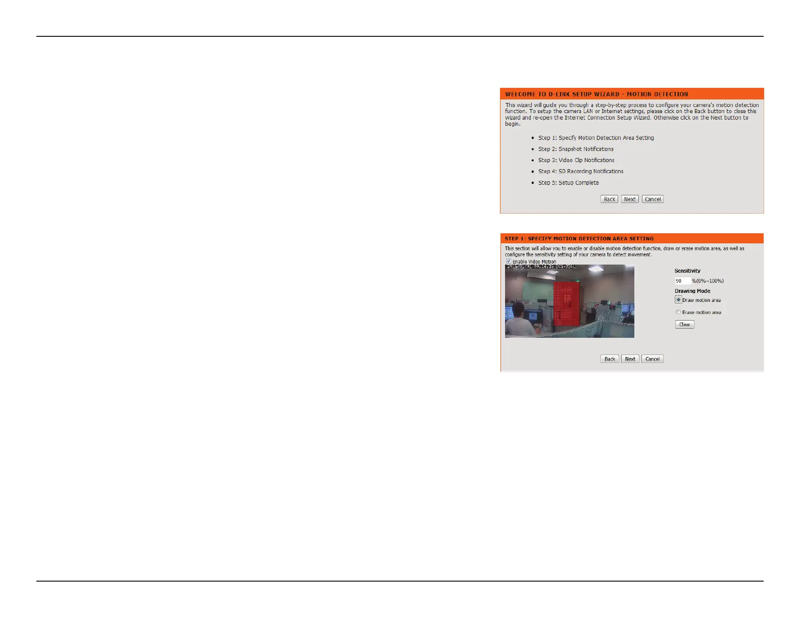 camera. Make sure you draw an area for the camera to monitor for motion.