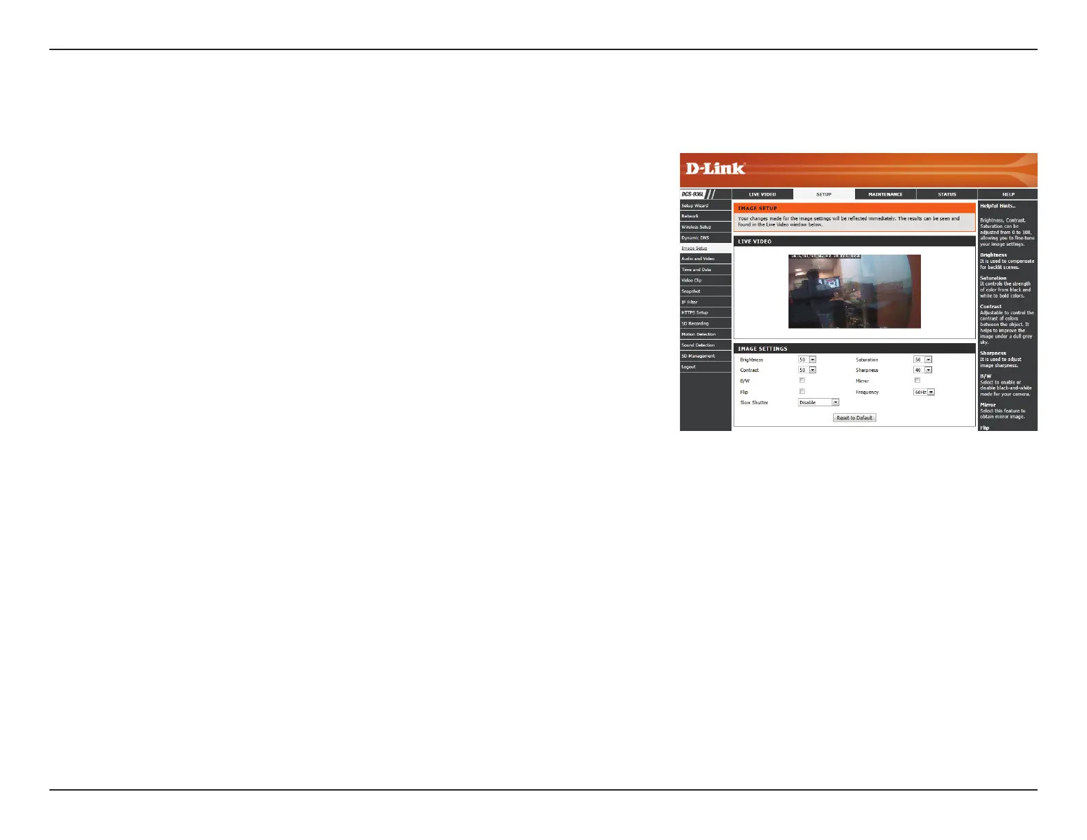 This section allows you to congure the image settings for your camera.