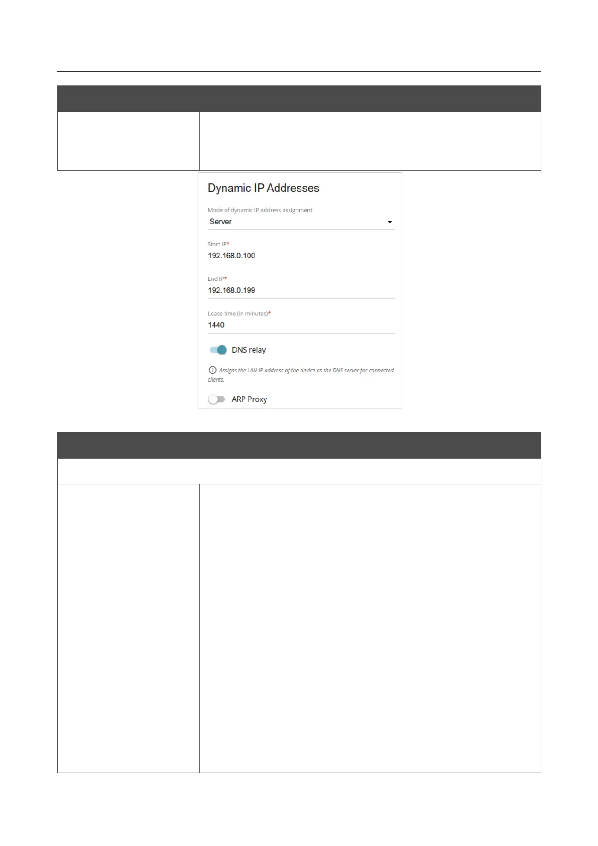 Figure 99. Configuring the local interface. The IPv4 tab. The Dynamic IP Addresses section.
