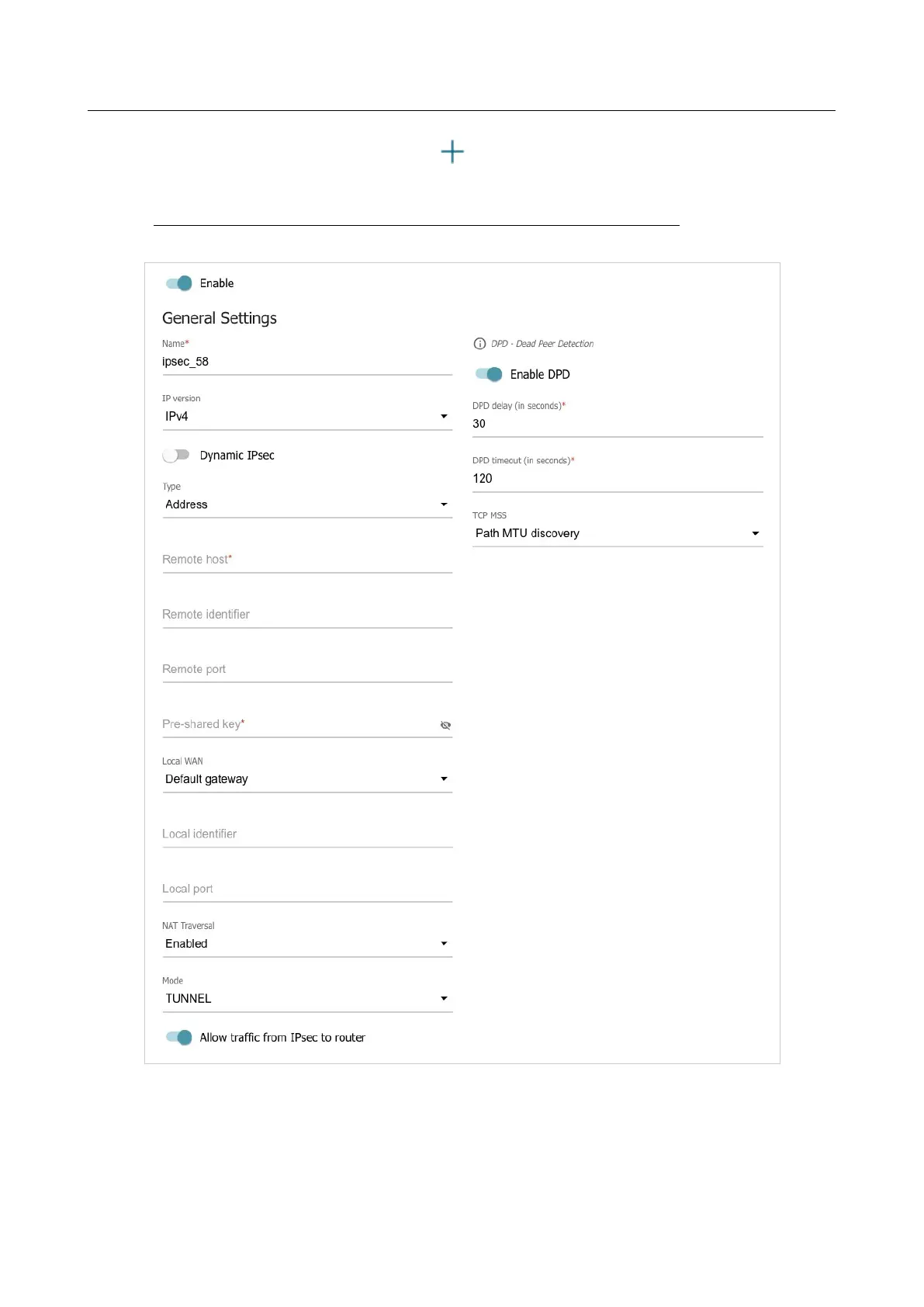 Figure 157. The page for adding an IPsec tunnel. The General Settings section.