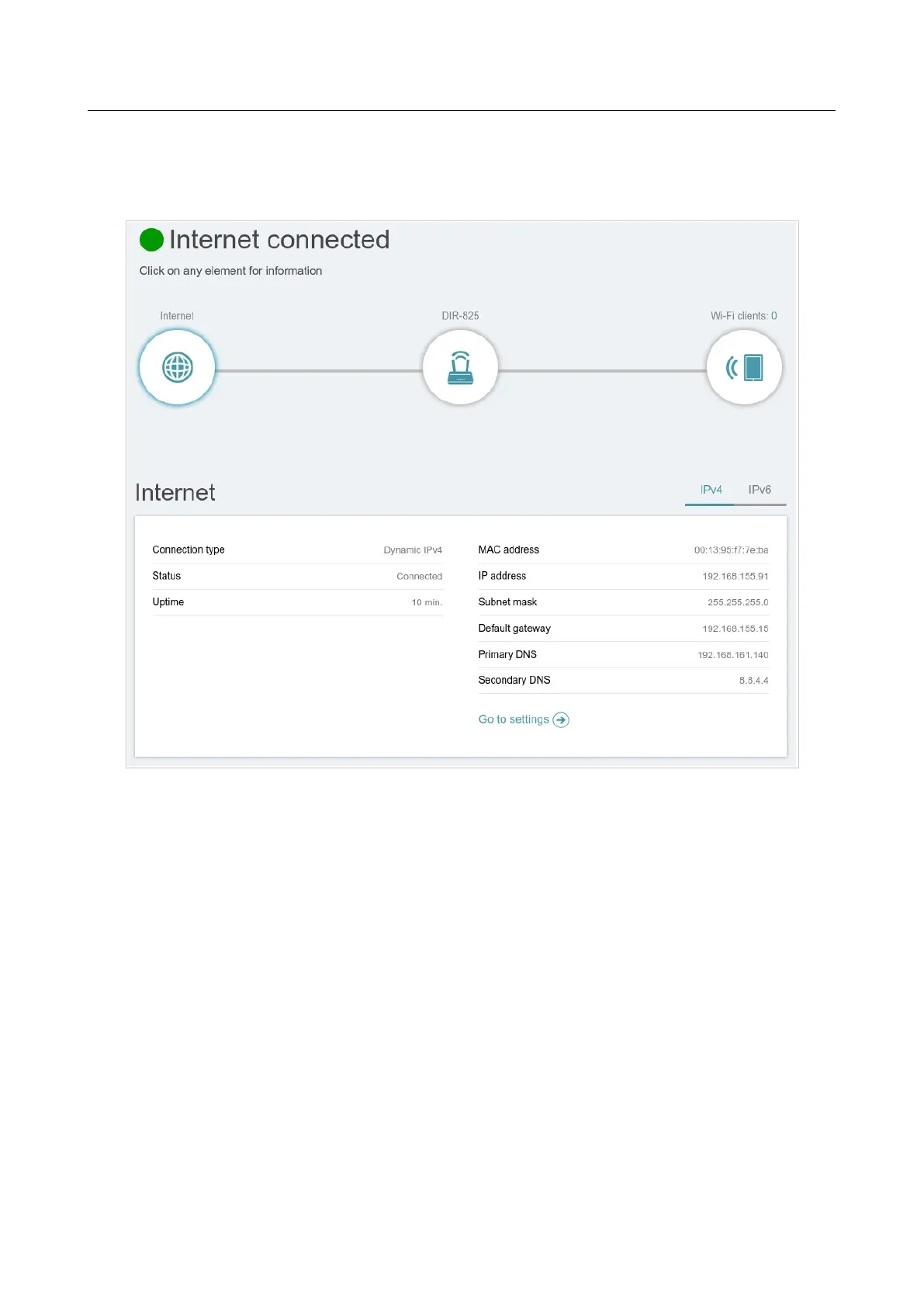 Click IPv4 or IPv6 to display details of the IPv4 connection and IPv6 connection respectively.
