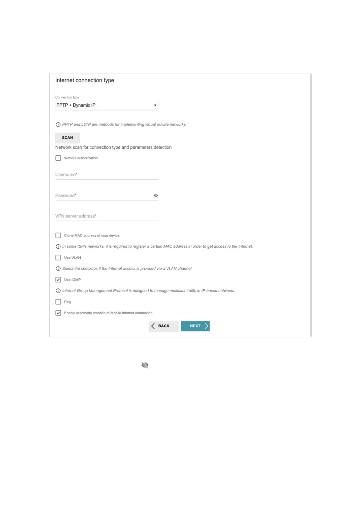 your ISP. Click the Show icon ( ) to display the entered password. If authorization is not