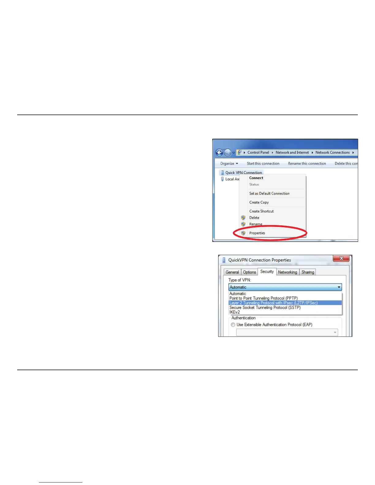 Right-click on the Quick VPN Connection you just created and left-click on
