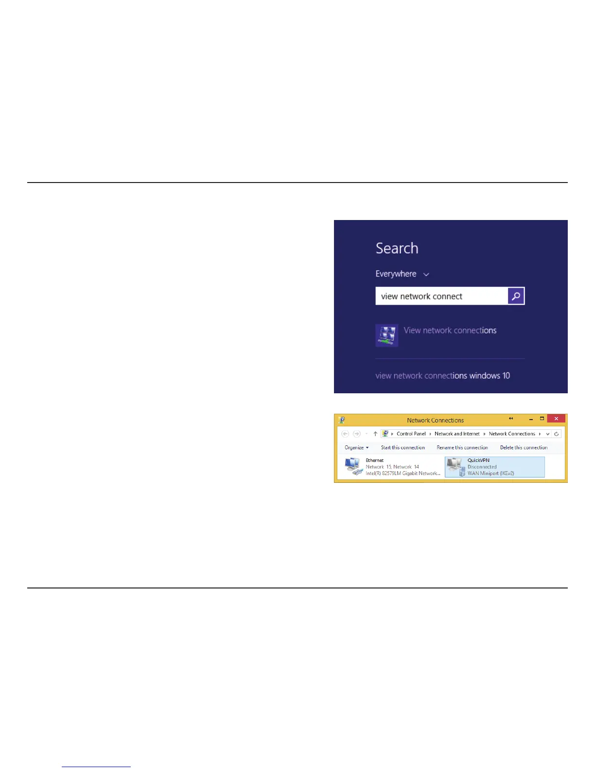 Click the Start button and type view network connections.