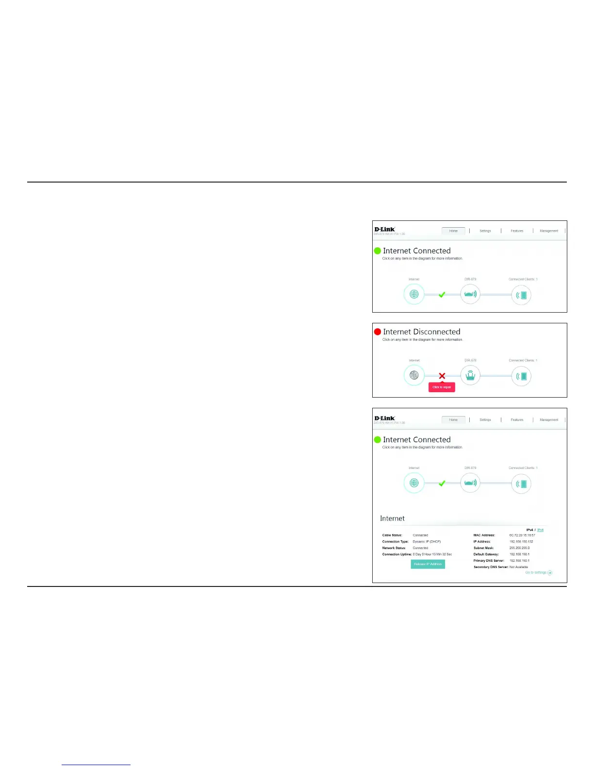 the Internet. If it is disconnected, click Click to repair to bring up the setup