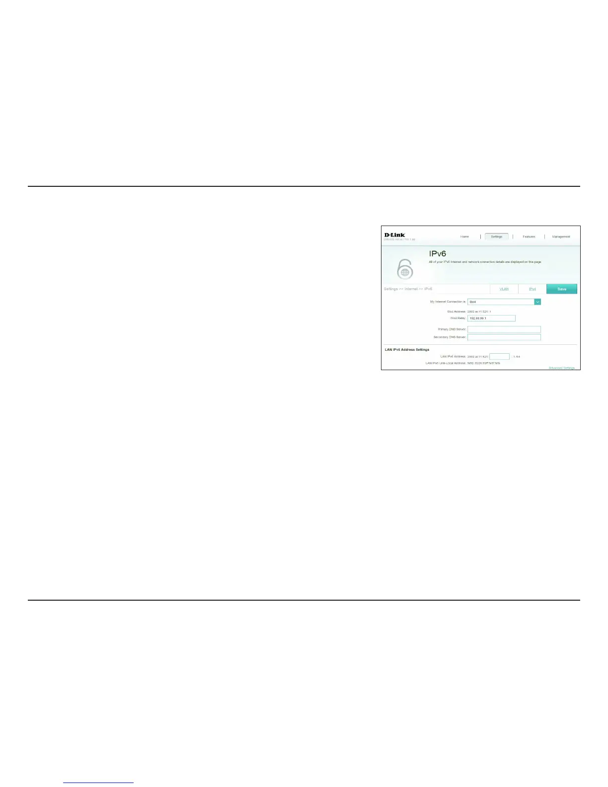 In this section the user can congure the IPv6 6 to 4 connection settings. 6to4