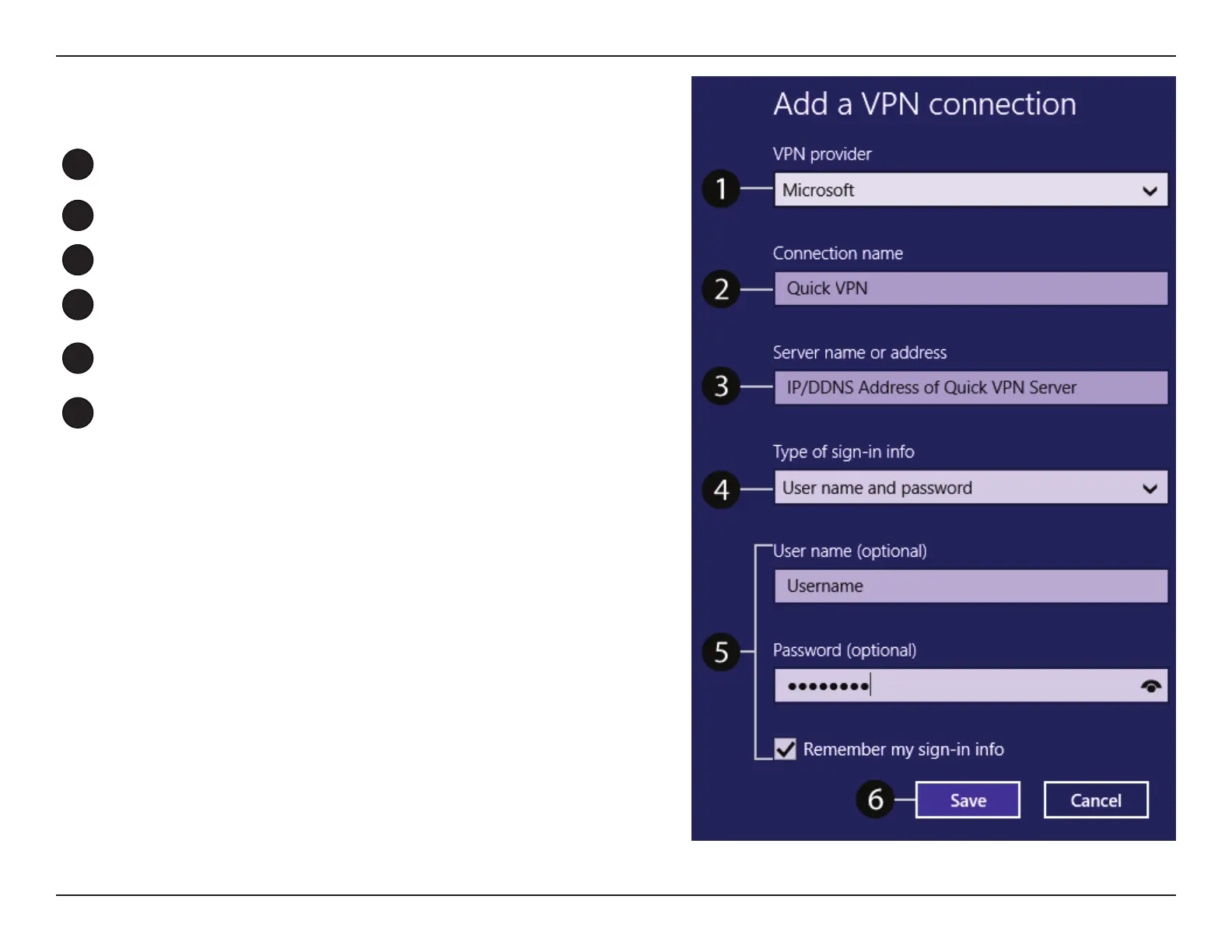 Enter your IP/DDNS address of your Quick VPN server.