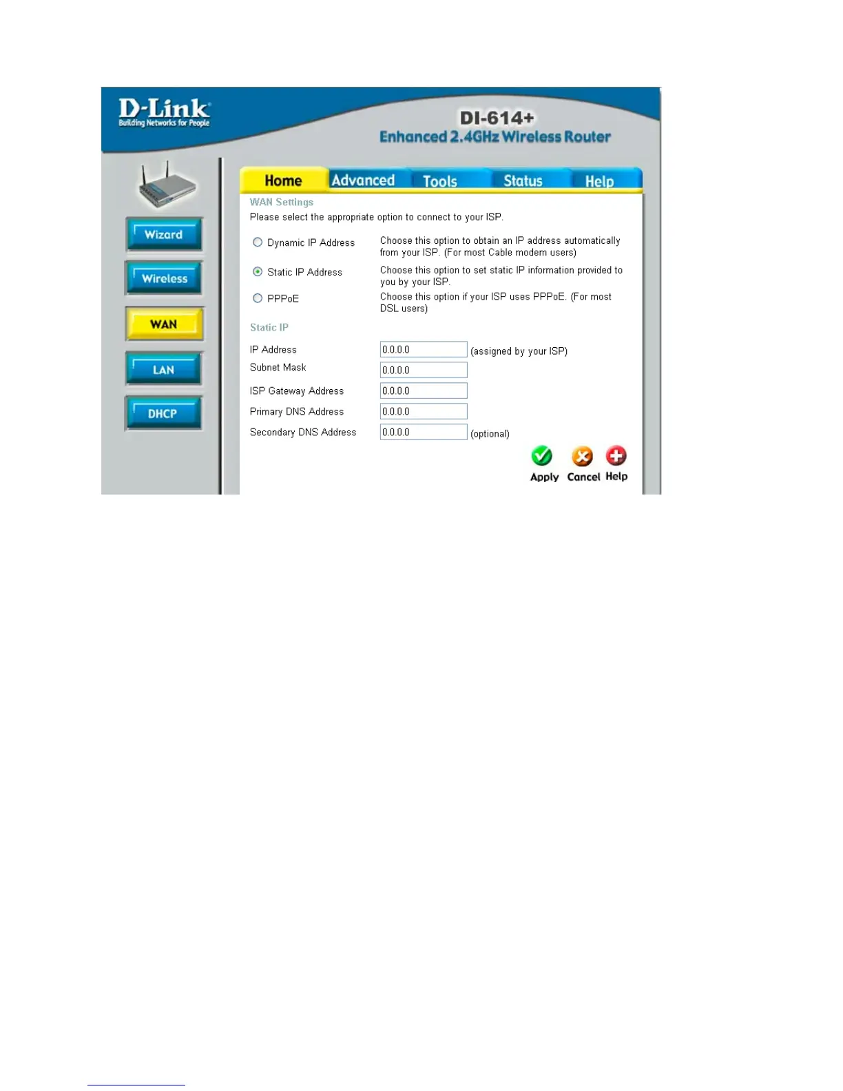 four IP octets separated by a dot (x.x.x.x). The Router will not accept the IP