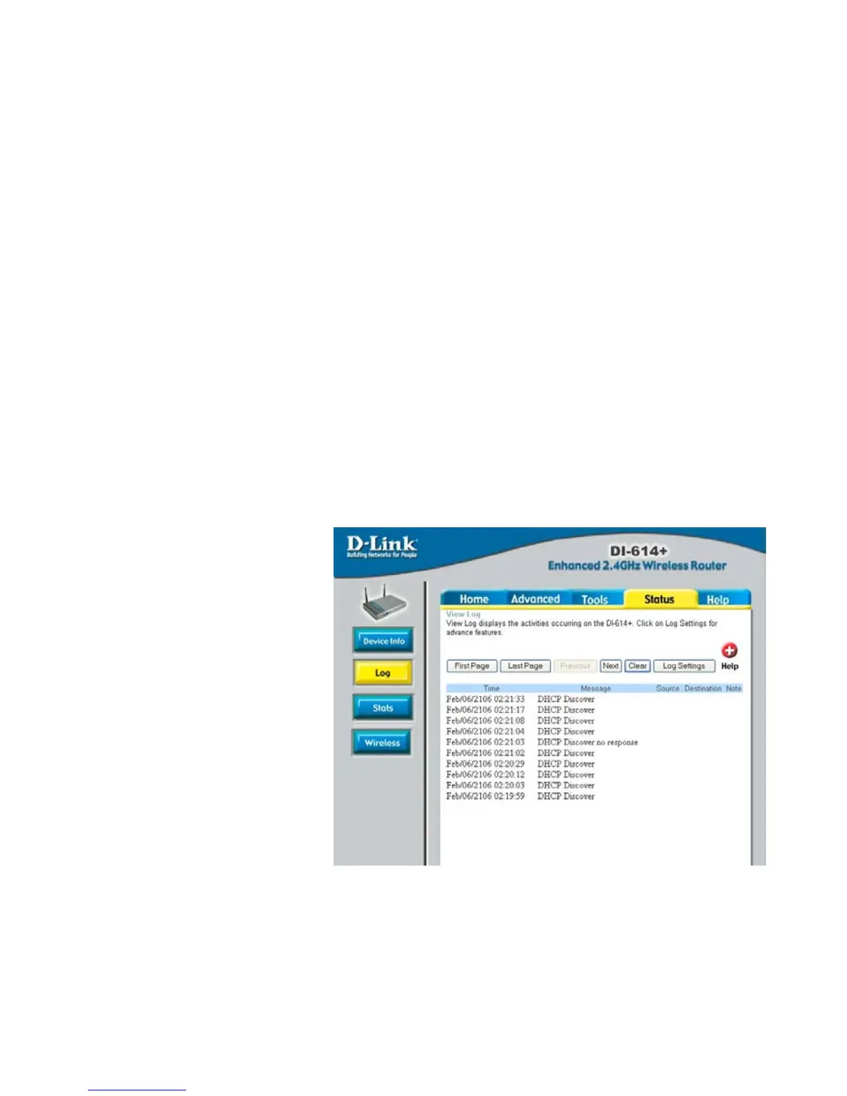 This page allows you to observe the DI-614+’s working status: